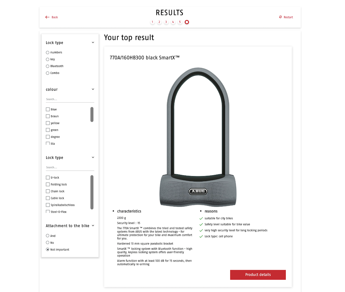 Certain products have several sub-categories and this makes it harder for the customer to find the right kind of product. E.g. ABUS has locks which work with different mechanisms and thereby have different advantages.