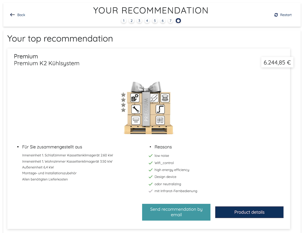 Air conditioning is tricky and complex as each space comes with a different layout (interior and exterior) and different dimensions. Each project hence comes with its unique requirements and customer preferences. But the KOS Klima configurator bundles all of these different needs and dynamically calculates the price accordingly.