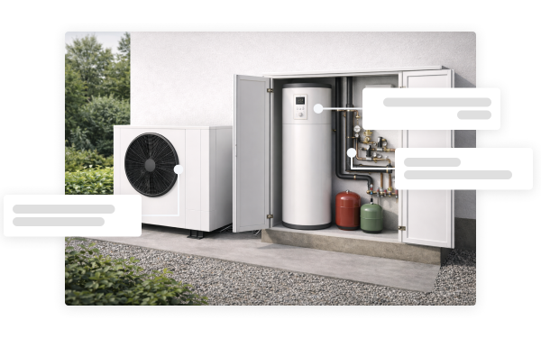 Wärmepumpe, Speicher, Regelung, Hydraulik und Zubehör - ein Heizsystem ist ein komplexes Zusammenspiel. Der Set Builder dimensioniert und konfiguriert automatisch.