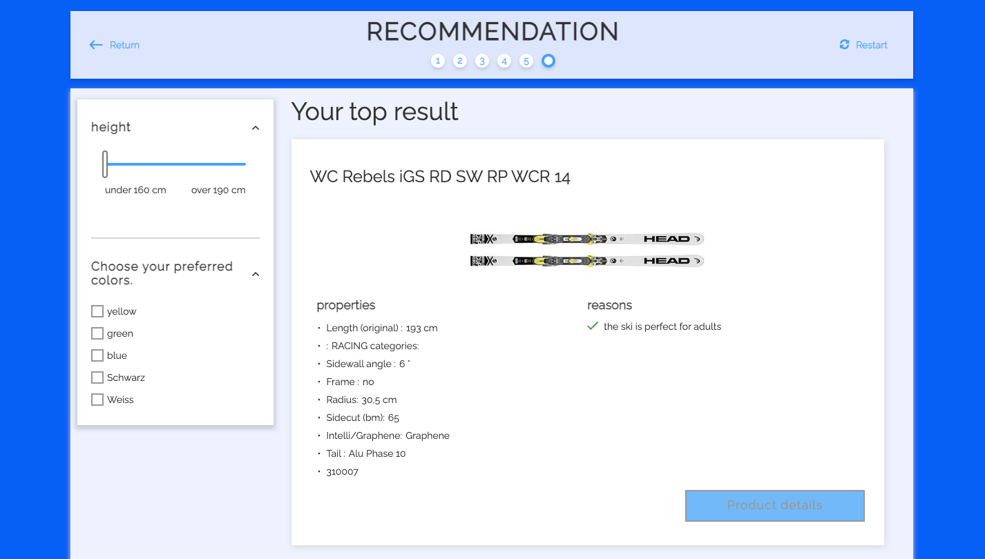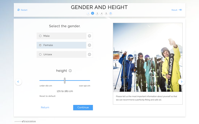 With omnichannel options on the rise, a Product Guide can target both beginner and professional skiers visiting your Ecommerce site. This means that you can segment multiple target groups and create different advisory processes within the same Product Guide.