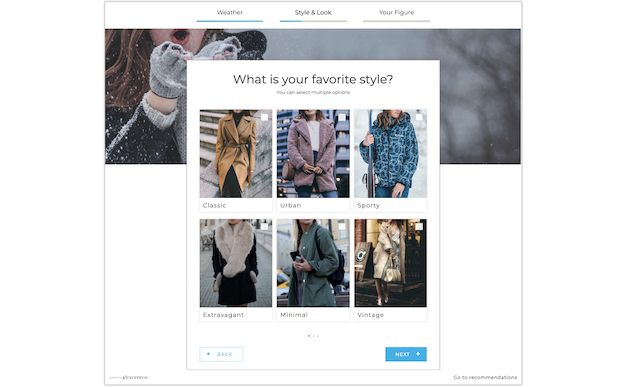 With the Coat Finder tool, you can customize the characteristics for your products thanks to our signature AI Data Trainer. Hence, instead of a coat being brown and thick, you can relabel it as being stylish for winter and suitable for a certain temperature or climate.