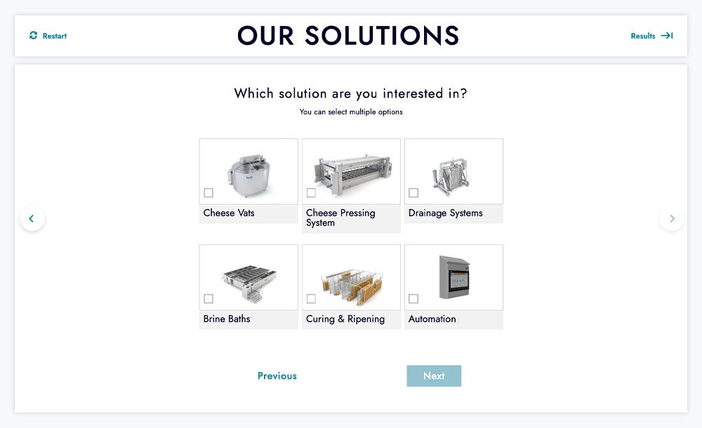 Product Finder: If a company offers a large number of different solutions and additional services, a classic Product Finder is ideal to generate the right recommendation for each customer.