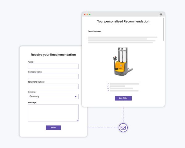 The Product Guide gives an option for customers to connect with Jungheinrich at each stage of the advisory process. It contains features such as PDF generation, product comparisons, and lead generation functionalities. It also offers video explanation content and smart preselections, making it easier for customers to select specific product features.