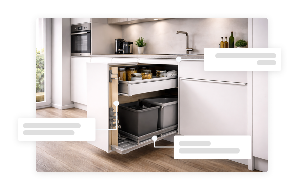Cabinets, worktops, electrical appliances, handles, and lighting – a kitchen is a complex system. The Set Builder ensures a perfectly coordinated configuration.