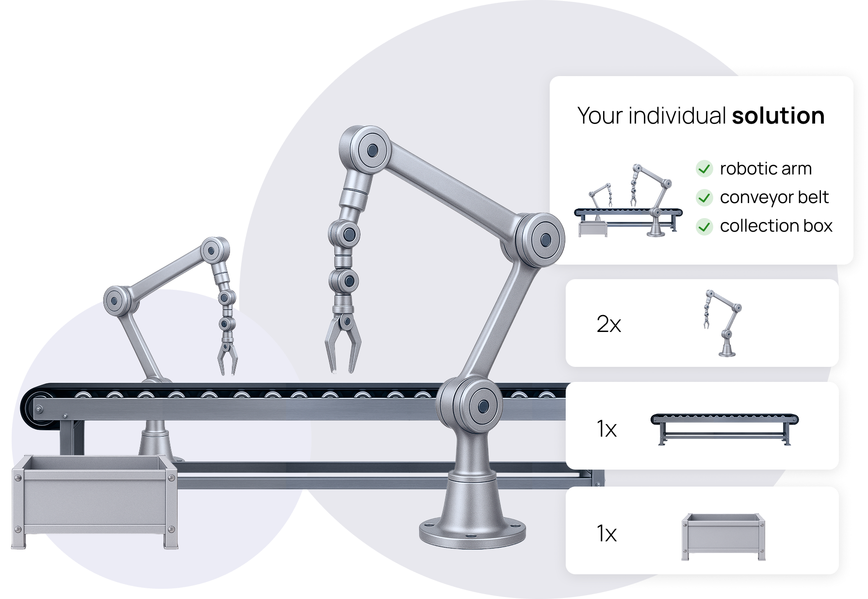 From raw material processing to final packaging, a production line consists of many carefully coordinated machines. The Set Builder calculates the optimal configuration.